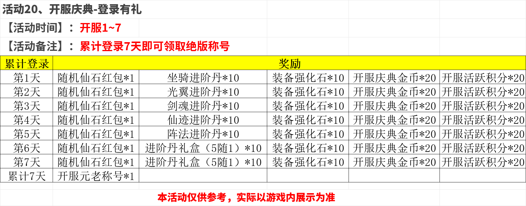 1号游戏《少年江山》开服活动20 开服庆典-登录有礼